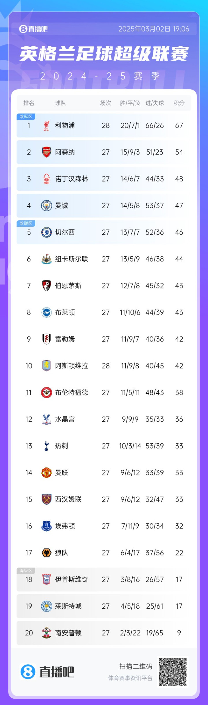 而拉特克利夫控股的另一支球队曼联,本赛季的表现却截然不同。本赛季夏窗和冬窗,曼联豪掷2.46亿欧元,签下乌加特、约罗、德里赫特、齐尔克泽等多名新援,但在英超联赛中,曼联27轮仅积33分,排名积分榜第14,落后欧战区13分。